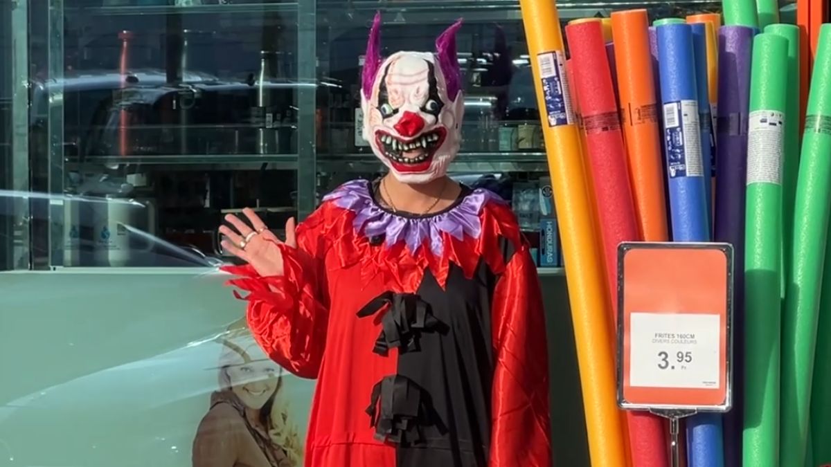 Laura, déguisée en clown, a circulé dans le centre-ville de Bulle dans le cadre d’une vidéo tournée pour Halloween. La scène a été filmée par Théo, en caméra cachée.