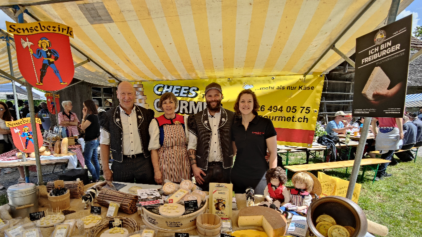 Stefanie und Olivier, die Betreiber von Chees Gourmet, sind veritable Käse-Aficionados, In ihrem Laden in Tafers werden das ganze Jahr über mehr als hundert Käsesorten und -produkte angeboten. Einen Teil davon stellt Olivier in seinen zwei Käsereien in Düdingen und Schweni her. Kennen Sie Schweni? Es handelt sich dabei um einen kleinen Weiler mit ein paar Bauernhöfen in den Sensler Hügeln im Gebiet von St. Antoni, nicht weit vom Kanton Bern entfernt. In der Käserei Schweni stellt Olivier mit seinen 4 Angestellten vor allem einen Vacherin Fribourgeois AOP her, der weitherum bekannt ist. Der Freiburger Staatsrat hat ihn sogar als einen von zwei Käsen ausgewählt, der 2022 an den offiziellen Apéros serviert wird.