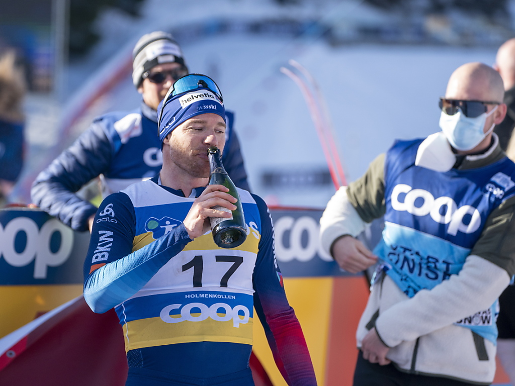 Auf der Zielgeraden nutzte der Schweizer die Abwesenheit der Russen, um in diesem Winter doch noch einen Top-Ten-Platz zu erreichen. Im Endspurt einer Vierergruppe hätte auch Platz 11 gedroht. Doch der bald 36-jährige Cologna liess sich dank kräftiger Doppelstock-Stösse nicht durchreichen. Im Ziel erhielt der Schweizer eine Flasche Champagner überreicht, liess den Korken knallen, sich auf Schultern tragen und nahm Gratulationen entgegen.