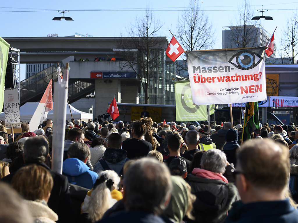 Demo von Massnahmengegnern in Bern-Wankdorf