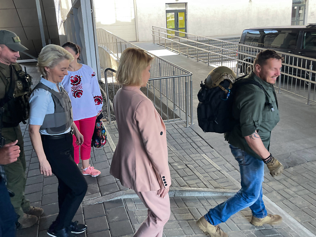 "Wir werden eine Bestandsaufnahme der für den Wiederaufbau benötigten gemeinsamen Anstrengungen und der Fortschritte der Ukraine auf ihrem europäischen Weg vornehmen", sagte von der Leyen zu ihrer Ankunft in Kiew am Samstagvormittag. "Dies wird in unsere Bewertung einfliessen, die wir demnächst vorlegen werden."