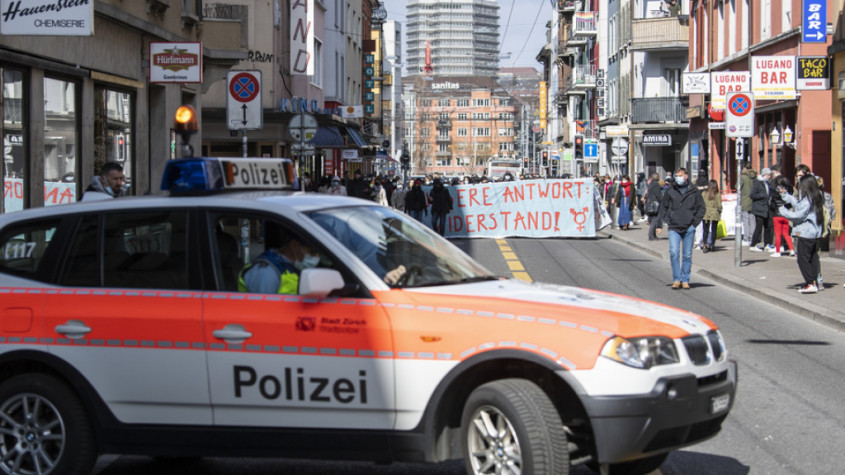 Die unbewilligte Demo war zuvor auf dem Helvetiaplatz von der Polizei verhindert worden. Zur Demonstration aufgerufen hatte das feministische Streikkollektiv Zürich. Nur eine Handvoll Demo-Teilnehmende fand sich bis 13.30 Uhr auf dem Helvetiaplatz ein, wie ein Korrespondent der Nachrichtenagentur Keystone-SDA berichtete. Zu Sachbeschädigungen sei es nicht gekommen, teilte die Polizei mit.