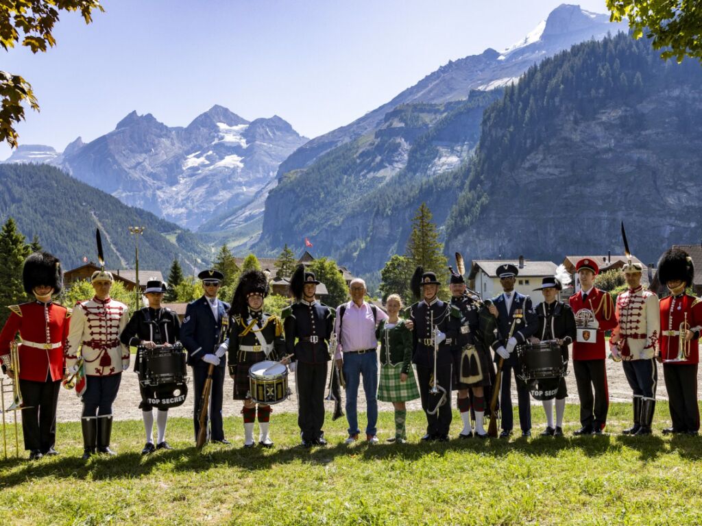 Eine illustre Delegation des Basel Tattoo ist nach Kandersteg gereist, um alt Bundesrat Adolf Ogi zum Achtzigsten ein kleines Geburtstags-Programm zu bescheren.