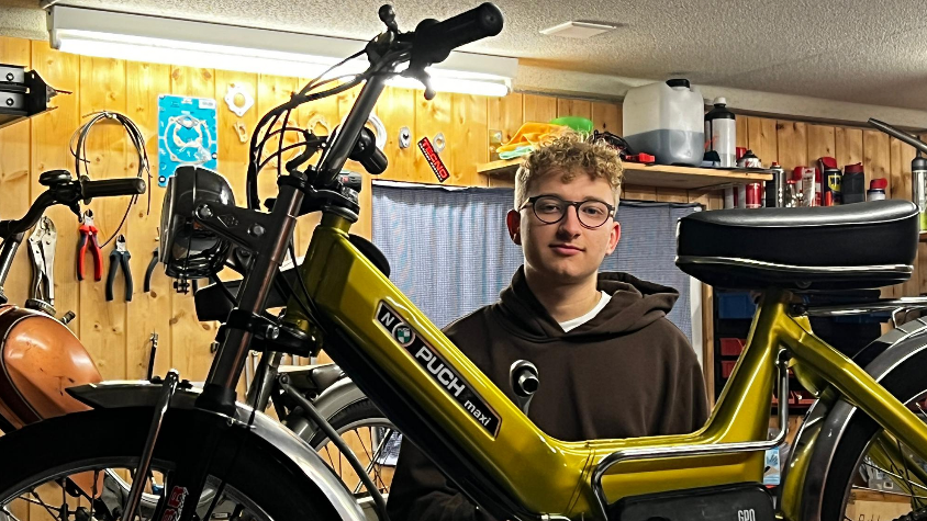 Schon von klein auf half Colin Gauch seinem Vater, Autos zu reparieren. "Zu meinem 14. Geburtstag hat mir mein Vater ein Töffli geschenkt." Von diesem Moment an entwickelte der Tentlinger eine Leidenschaft dafür. Im August 2021 hat er eine Töffli-Garage eröffnet und sich selbstständig gemacht - im Alter von 17 Jahren.