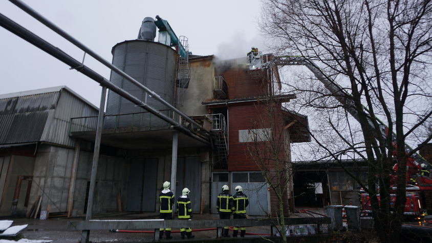 Ursache für das Feuer sei eine defekte Pelletpresse gewesen. Zur Sicherheit habe die Feuerwehr die Presse mit Wasser abgekühlt. Während des Einsatzes wurde ein Feuerwehrmann leicht verletzt. Die Höhe des Schadens ist noch nicht beziffert worden.