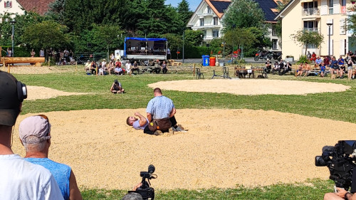 Es war der fünfte Gang, der den grossen Jubel der Einheimischen verhinderte. Marc Gottofrey vom Schwingklub Lausanne lag vor dem fünften Gang an der Spitze der Rangliste. Im fünften Gang bekam er es allerdings zum zweiten Mal an diesem Tag mit einem Eidgenossen zu tun und stellte zum zweiten Mal an diesem Tag. Trotzdem kann er zufrieden sein mit seiner Leistung, er landet am Schluss im zweiten Rang und schliesst den Tag ohne einzige Niederlage ab.
