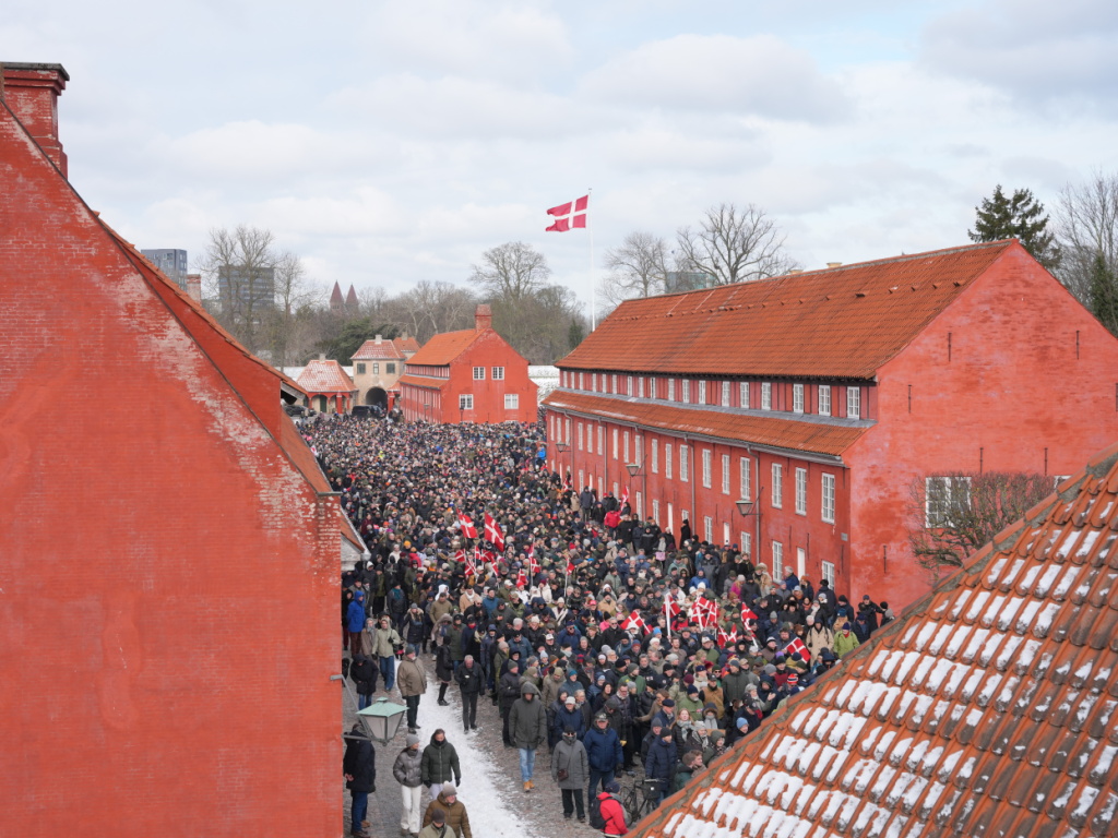 Réunis au Kastellet, la citadelle de Copenhague, les manifestants ont assisté à une brève cérémonie devant le monument dédié aux soldats tombés au combat avant que le cortège ne se mette en marche.