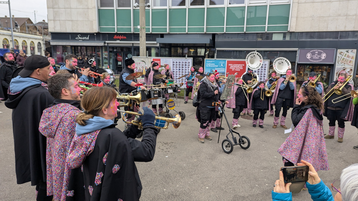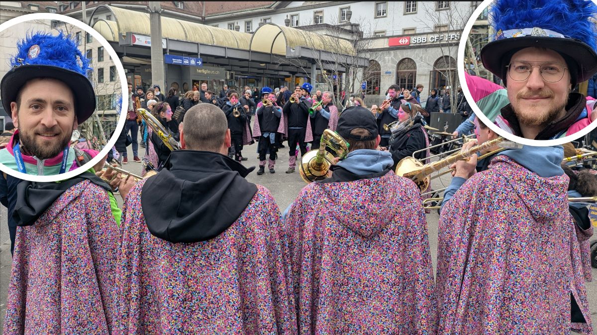 Avec leurs trois batteries, leurs tubas décorés et leurs capes aussi bariolées qu'une poignée de confettis, les musiciens du Loitchou's Band ont fière allure dans les rues de Fribourg, ce samedi après-midi. Arrivé le jour-même du canton du Jura, la guggen enchaîne les représentations. "On a commencé vendredi soir au Noirmont. On vient faire deux jours au carnaval de Fribourg et on termine en rentrant le dimanche soir avec une fête pour les gens du coin" liste David, l'un des trompettistes de la bande.