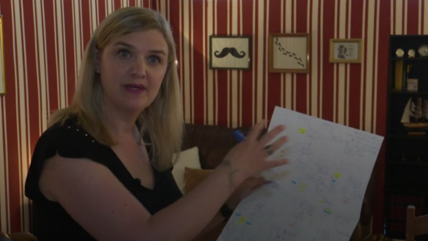 De ce brainstorming naît un schéma qui est ensuite mis au propre et simplifié. Toutes les énigmes trouvées sont alors synthétisées "par chemin".