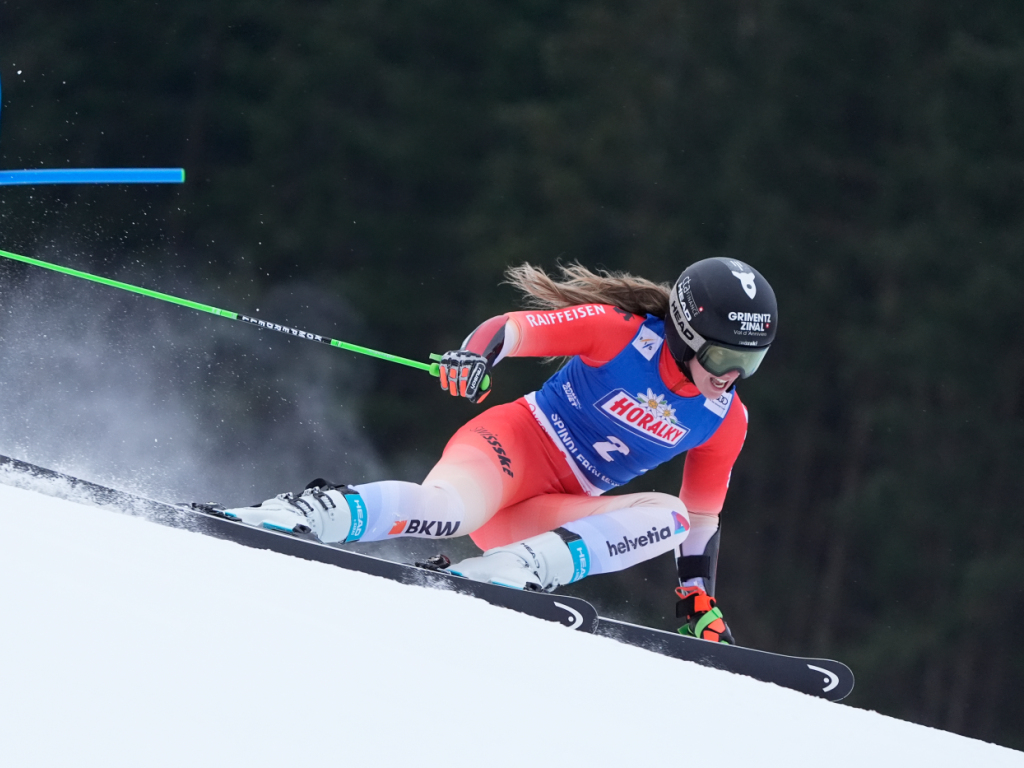 Camille Rast est en course pour un nouveau podium en géant à Spindleruv Myln, en Tchéquie. La Valaisanne a terminé la première manche à 0''02 de la Suédoise Sara Hector.