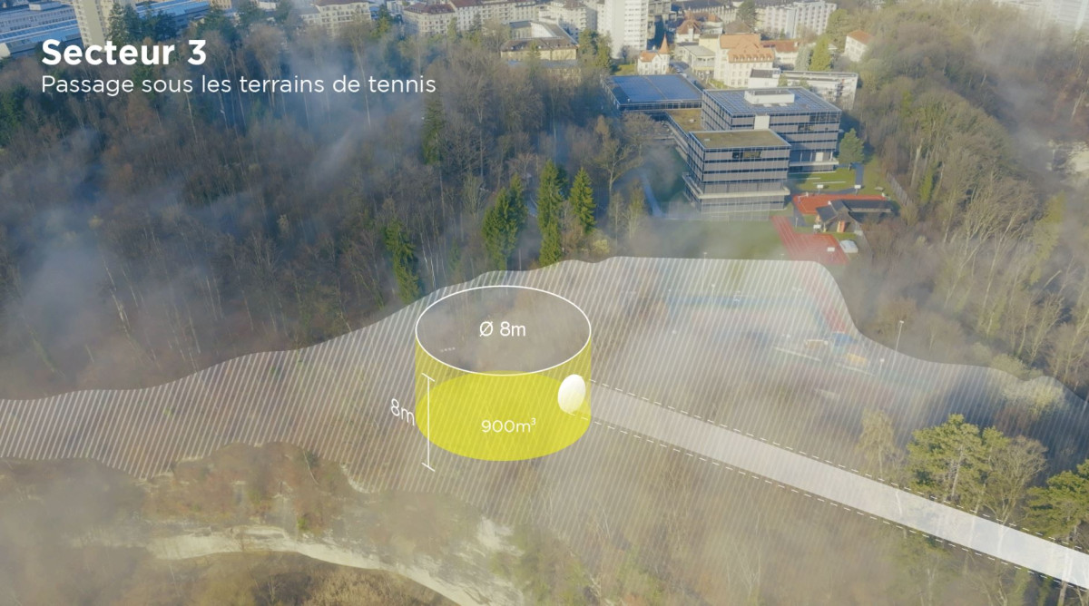 Sur le haut des tracés, les conduites passeront sous les terrains de tennis du collège Sainte-Croix par un tunnel de 130 mètres. Ce dernier sera créé sans intervention en surface, grâce à un microtunnelage, entre avril 2026 et juin 2027.