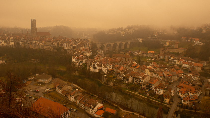 Le ciel fribourgeois s'est teinté d'ocre