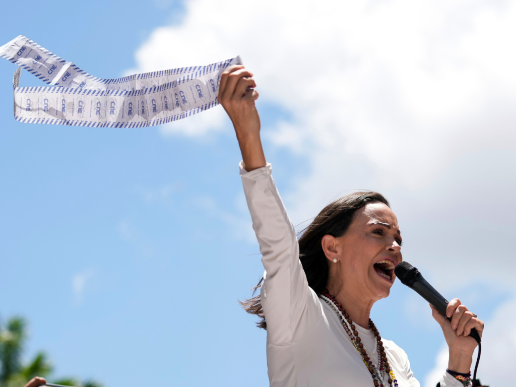 L'opposante de 58 ans est entrée dans la clandestinité au Venezuela en août 2024, quelques jours jours après une élection présidentielle à laquelle elle avait été empêchée de se présenter. Les États-Unis, l'Europe et de nombreux pays d'Amérique latine refusent de reconnaître les résultats du scrutin qui a permis à Nicolas Maduro d'enchaîner un troisième mandat de six ans.