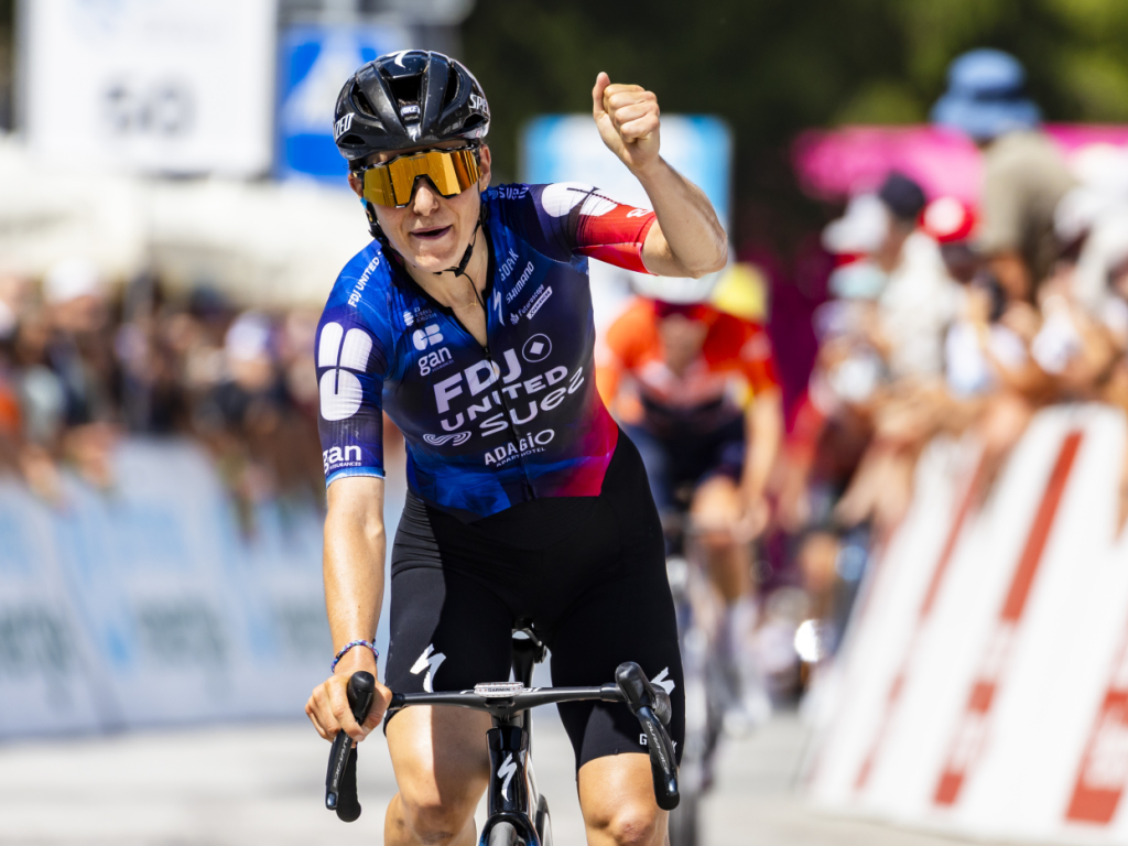 Un temps lâchée sous l'effet des attaques de l'Italienne Elisa Longo Borghini (4e), Elise Chabbey est revenue dans le groupe de tête à six kilomètres de l'arrivée. La meilleure grimpeuse du Tour de France 2025 a fait la différence dans les derniers mètres de l'ascension de la Via Santa Caterina.