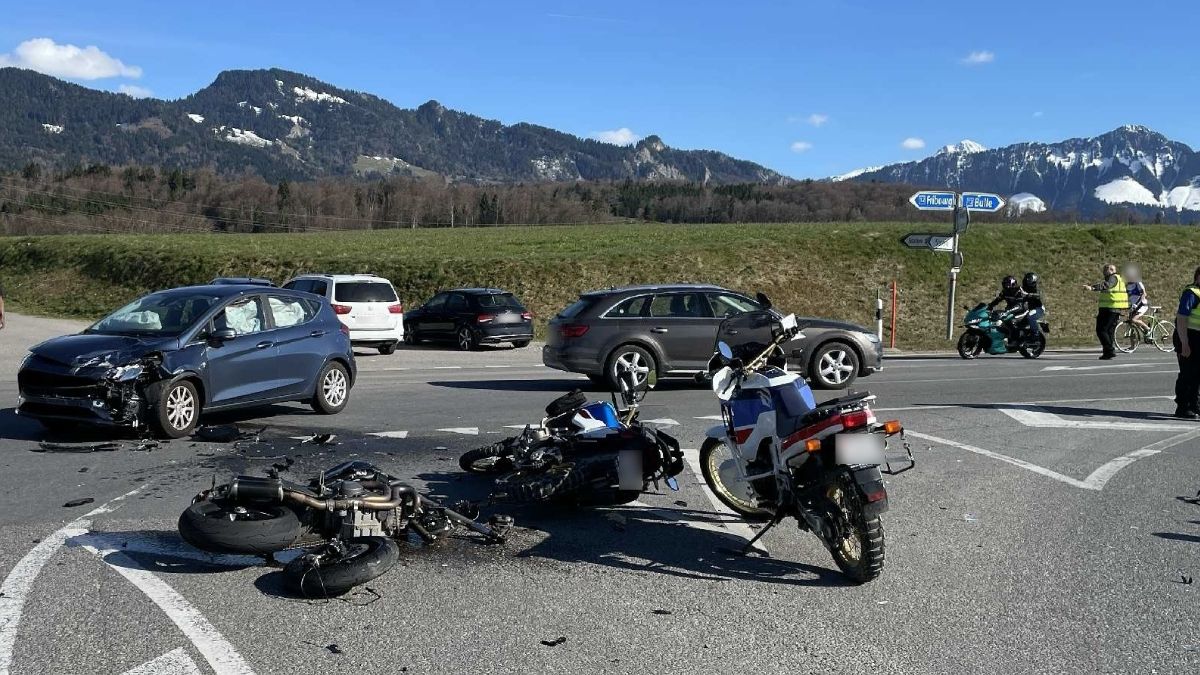 Samedi 4 avril 2026, vers 16h30, un accident de la circulation s’est produit sur la route cantonale entre Riaz et Sorens. Un automobiliste de 62 ans est entré en collision avec une moto conduite par un homme de 37 ans.