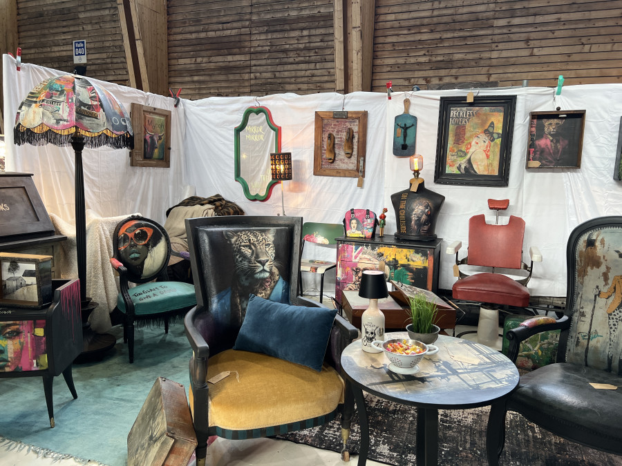 La brocante est également un terrain d’expression artistique pour certains. Heike Maro, présente pour la troisième année consécutive, transforme des objets chinés promis à la déchetterie en créations uniques. En les customisant, elle leur offre une seconde vie et voit dans ces événements une véritable vitrine pour son travail, malgré le temps que demandent ses réalisations.